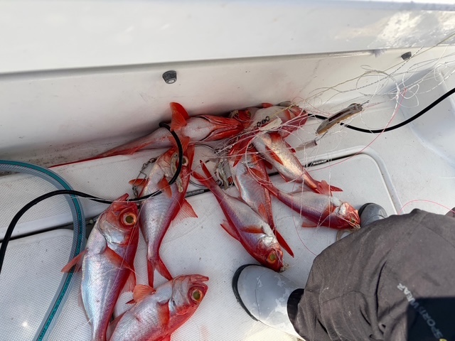 2名で60本、2キロ〜1キロのキンメが落とせば喰ってくる…