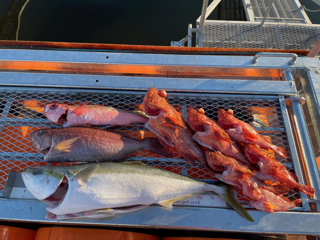 ヒメダイ、ブリ、うっかりカサゴと沢山釣って来られました